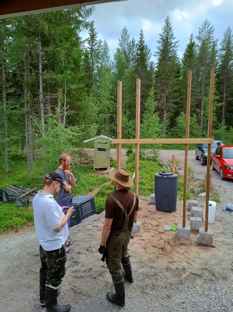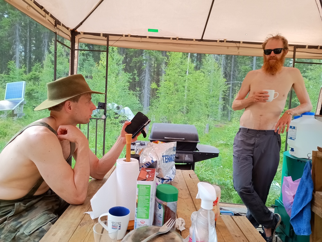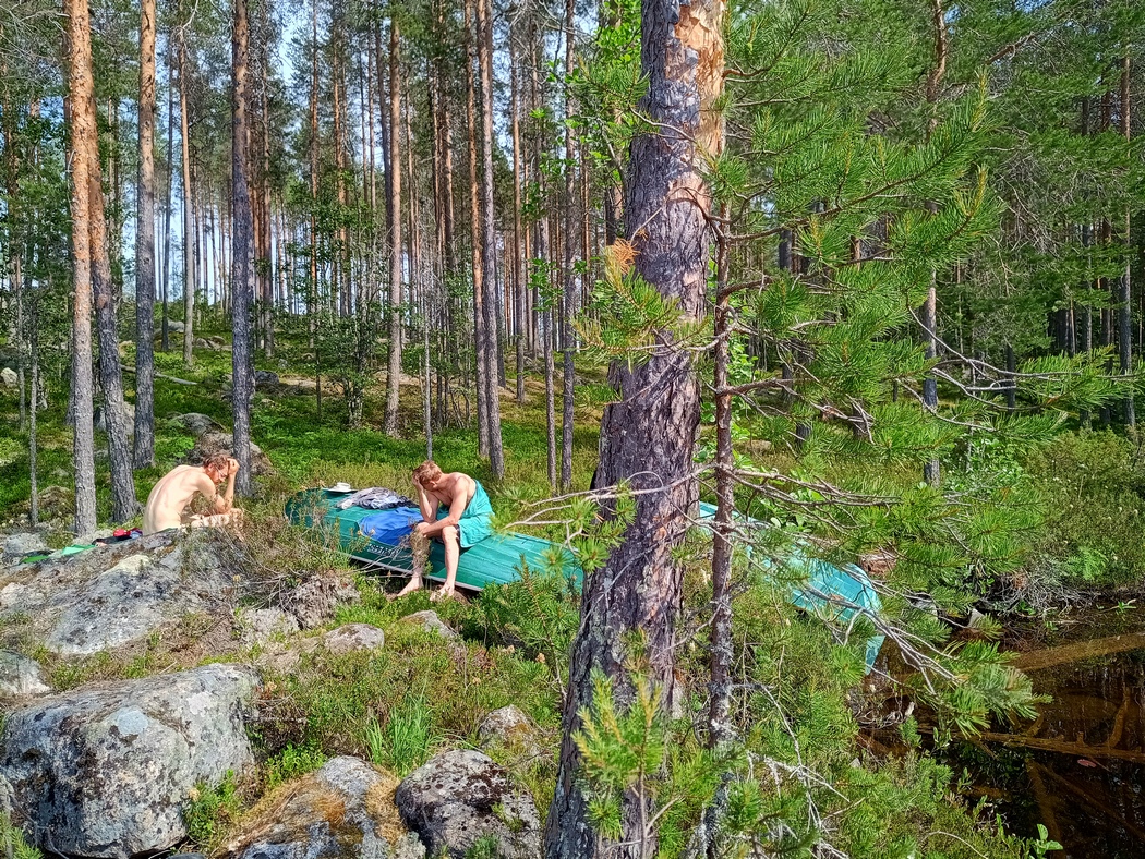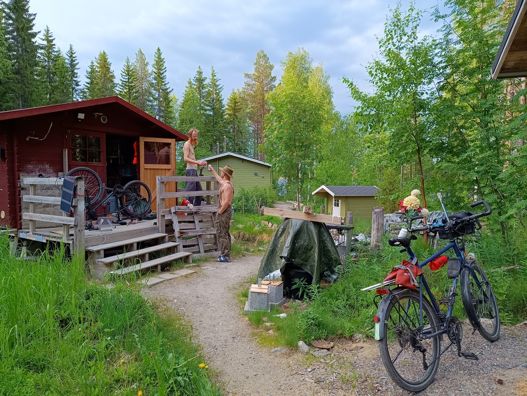 Bei einem Einkaufsausflug nach Vesanto trafen Karl und Tilmann ein belgisches Fahrradtouren-Pärchen, dass wir natürlich gleich ansprechen mussten. Natürlich waren auch sie auf dem Weg zum Nordkapp, hatten jedoch vor Lappland mit dem Zug zu überspringen. Na ja. Nach drei Tagen stiessen Karls Bruder Simon mit seinen beiden Kindern und Karls und Simons Mutter zu unserer harmonischen Runde hinzu und komplettierten traditionsgemäß die Familienbande zum Mittsommer.