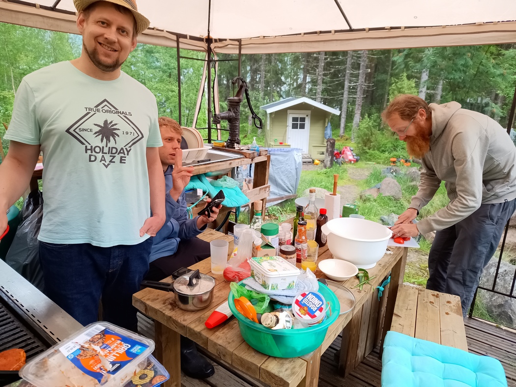 Dies sollte nicht der einzige Wermutstropfen in einer ansonsten makellosen Chillaxe-Woche bleiben. Aus unerfindlichen Gründen verpflichtete uns Karl, uns mit der finnischen Kultur auseinanderzusetzen, weshalb wir am 23. Juni gemeinsam zu einer Mittsommer-Party im Sommer-Café aufbrachen, die zwar 2 Tage nach dem tatsächlich längsten Tag im Jahr stattfand, aber nach finnischer Tradition eben auf das Wochenende gelegt wird, damit auch dem übermäßigen Alkoholkonsum nichts im Wege steht. Die sich dort hauptsächlich versammelten Hillbillies, durchmischt mit ein paar Städtern, die Mittsommer in ihren Mökkis verbrachten, hatten sich jedenfalls am teuren Bier (wie können sich in Skandinavien so viele Menschen leisten Alkoholiker zu sein?) bereits umfassend gütlich getan. Kurz bevor die Band, die mit finnischen Hits die Party-Crowd auf die Tanzfläche lockte, begann, spielte der DJ etwa 10 Minuten lang einen recht ansprechenden elektronischen Mix, der uns Dreien recht gut gefiel, doch dem mit dem Aufspielen der Band ein jähes Ende gesetzt wurde. Die Meute bevorzugte allerdings die Band, worauf die Tanzbereitschaft und das Mitgrölen schließen ließen. Wenig überzeugt von der musikalischen Darbietung und mit seinem Bildungsauftrag wohl zufrieden (das musste seine Motivation gewesen sein, denn er selbst regte sich am meisten über die Musik auf und hatte gleichzeitig am stärksten auf den Besuch der Veranstaltung gedrängt), erklärte Karl, dass wir gemeinsam mit Simon, seinen Kindern (die offiziell nur bis 10 auf der Party erlaubt waren, allerdings noch ein bisschen länger das Süßigkeiten-Angebot leer kauften) und seiner Mutter wieder den Rückweg antreten könnten. Übrigens herrschte auch in Finnland aufgrund der Trockenheit ein absolutes Lagerfeuerverbot, sodass sowohl das private am 21. als auch jenes bei dieser Hillbilly-Party ausfiel.