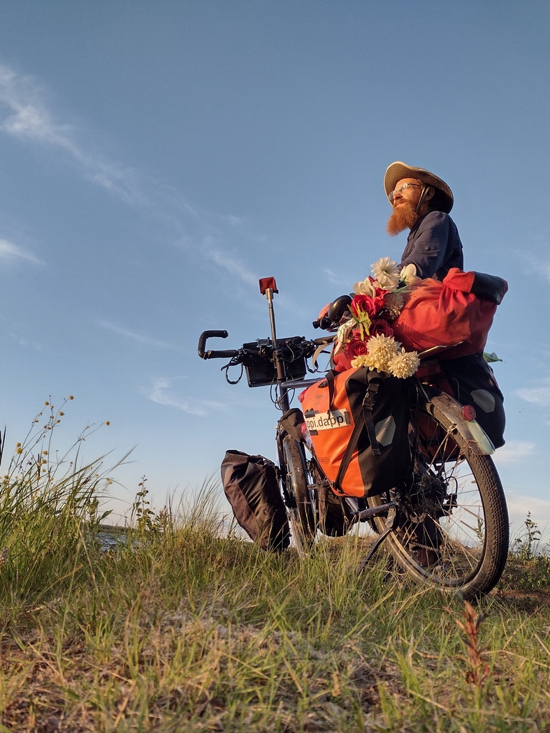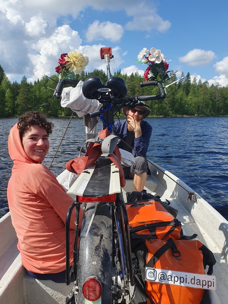 Am ausgesuchten Steg entdeckten wir dann tatsächlich einen Mann mit nacktem Oberkörper und Karl war schon im Begriff wieder abzudrehen und sich auf die Suche nach einem natürlichen Hafen zu machen. Jetzt muss dazu erwähnt werden, dass man bei Karls Äußerungen zu Finnen immer den Eindruck hat, als hielte er sie für ein ganz und gar griesgrämiges Volk, das ohne jegliche Hilfsbereitschaft und Empathie ausgestattet sei (trotzdem hatte er uns die ganze vergangene Woche Mal wieder versucht zu überreden nach Finnland zu ziehen.) Zum Glück ging er mit dem Herr, der auserkorenen Anlegestelle in Rufkontakt über, sodass dieser uns bald heranwinkte. Sehr freundlich empfingen er und seine Frau uns, halfen uns beim Entladen des Seelenfängers und waren sehr an unserer Radreise interessiert. Offensichtlich freuten sie sich über die ungeahnte Abwechslung und später sollte der Mann Tilmann noch über Instagram kontaktieren, sich für den unerwarteten Besuch bedanken, davon berichten auch seit Jahren eine lange Radreise zu planen, sich für die ausgebliebene Einladung zum Kaffee entschuldigen und uns für einen zukünftigen Besuch in Finnland schon einmal einladen. Soviel zu abweisenden Finnen.