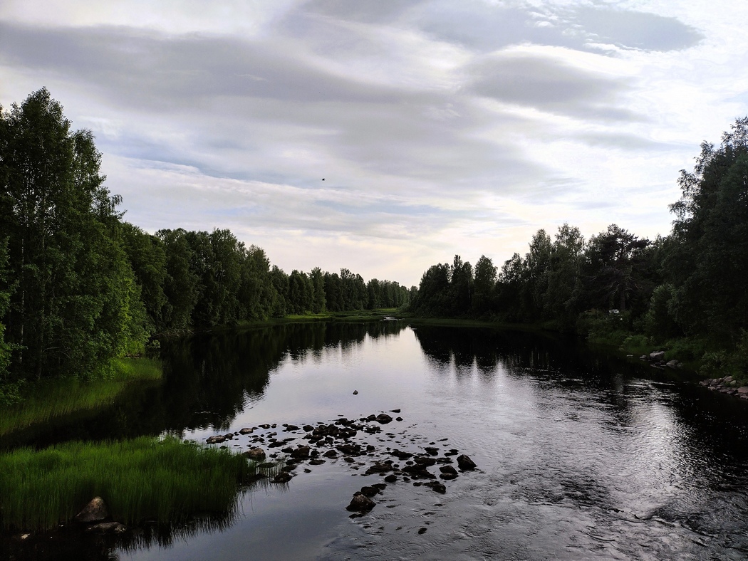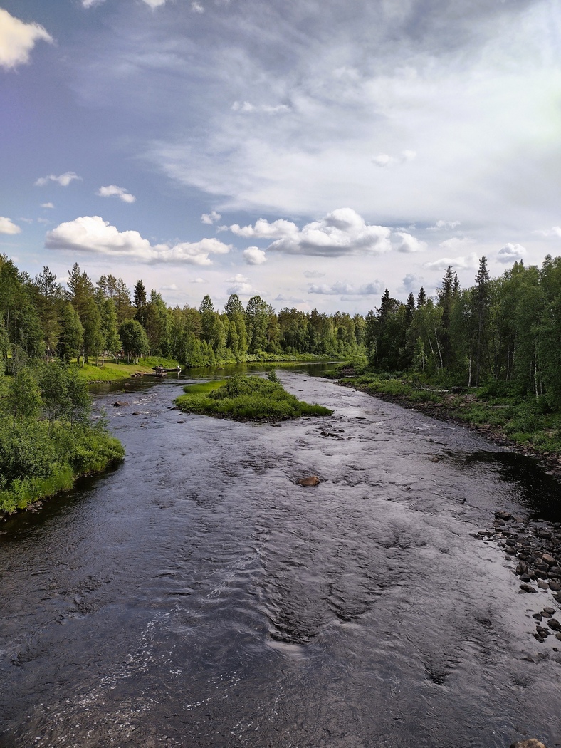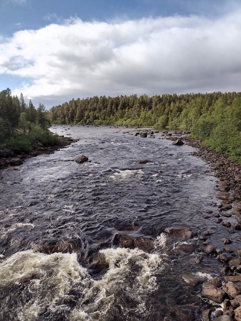 Am nächsten Vormittag war bald Lappland erreicht, während die Straße nach Rovaniemi angenehmerweise fast verkehrslos da lag. Erst die letzten Kilometer vor der Stadt, die traumhaft an der seegroß ausgedehnten Mündung des Ounasjoki in den Kemijoki gelegen ist, musste Tilmann auf die Schnellstraße 20 abbiegen, auf der sich nun auch mehr und mehr deutsche und vereinzelt norwegische Wohnmobile nach Norden arbeiteten. Bis dahin hatte er kaum einmal länger angehalten, denn erstens blieb die Landschaft in gewohnter Monotonie, es gab also so gut wie nichts anzugucken, 2. gab es nach wie vor keinerlei Bänke, auf denen man eine kurze Verschnaufpause hätte einlegen können und 3. begannen die Schnarken und Mücken, die eine inzwischen fortwährend umschwirrten, umgehend auf einen einzuhacken, sobald man es wagte, auch nur kurz inne zu halten.