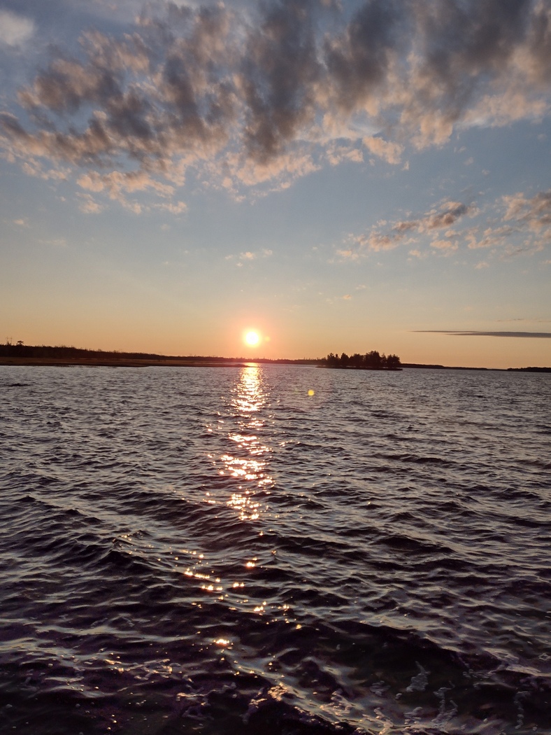 Danach dauerte es auch nicht mehr lange bis ein geeigneter Zeltplatz am See gefunden war und aufgrund der vorangeschrittenen Zeit und dem fast wolkenlosen Himmel, konnte Tilmann auch die erste Mitternachtssonne genießen, die ein munteres Glitzern auf der vom Wind aufgewühlte Wasserfläche tanzen ließ.