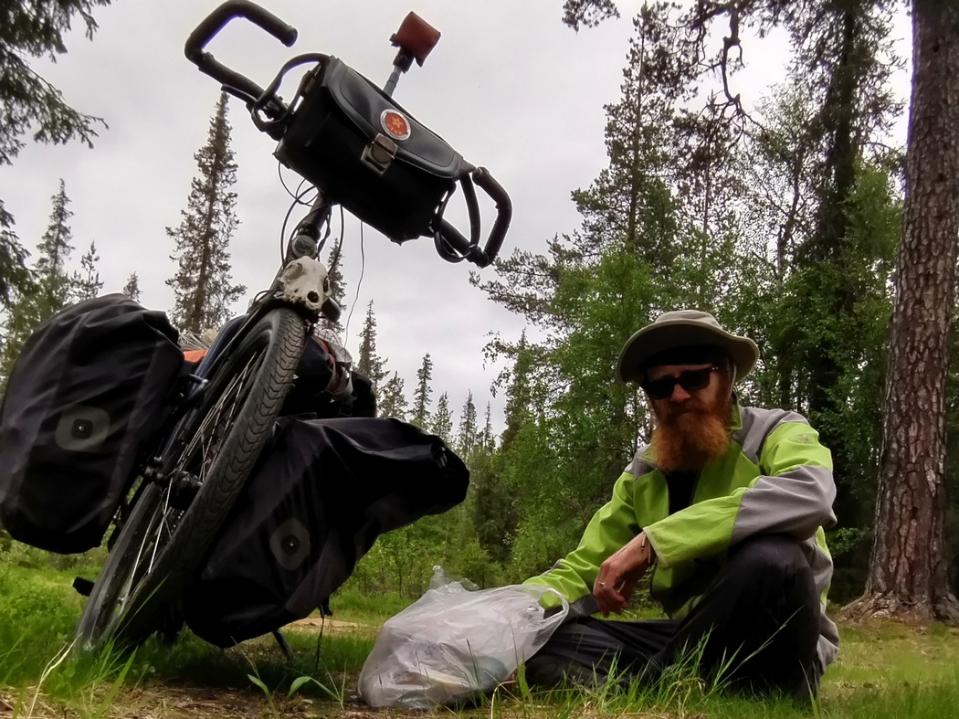 Auch hier, schon nah am Polarkreis waren noch überall kleine Dörfer und einzelne Hütten zu finden. Das hatte Tilmann so nun wirklich nicht erwartet. Allerdings traf er trotzdem niemanden an und musste so noch viel länger als eigentlich gewollt weiterfahren, um vor der Schlafplatzsuche noch Wasser aufzutreiben. Schließlich sah er in einem Haus endlich doch jemanden am Fenster und klopfte kurzerhand. Es handelte sich um ein altes Ehepaar und der Herr öffnete in Unterwäsche die Tür. Seine Unterhose bedeckte sein Gesäß nur zur Hälfte, aber seiner Frau, die das im Gegensatz zu ihm in jedem Fall hätte wahrnehmen müssen, schien daran nichts zu finden.