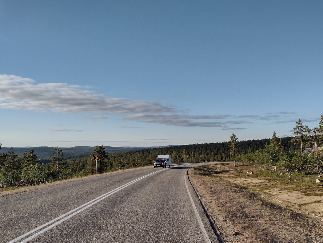 Nach dem gemeinsamen Frühstück gab U. Tilmann noch eine alternative Routenempfehlung bis in die nächste größere Stadt Rovaniemi, die eine kleine Verschnaufpause von der E75 bot und nicht an der Küste entlang, sondern gleich ins Landesinnere führte. Eigentlich hatten wir nie so richtig gute Erfahrungen mit Empfehlungen gemacht auf der Reise, aber da die Route sogar ein paar Kilometer kürzer war, entschloss Tilmann sich schließlich doch ihr zu folgen.