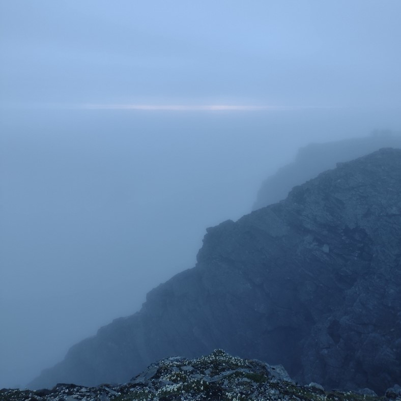 Hat sich das gelohnt? Die Sicht liegt deutlich unter 50 Metern, ein eiskalter Wind peitscht über die Klippen, alles ist längst feucht, wie die Wolken selbst in denen ich stehe. Bleibt nicht viel übrig als den Rest des Tages im Tourismuskomplex abzuhängen und das WiFi auszusaugen. Hin und wieder mal ein Blick nach draußen, da, ein Sonnenstrahl. Na ja, nicht wirklich, eher ein heller Streifen am Horizont. Aber schon ist die Weltkugel wieder vom Nebel eingehüllt. Hat es sich also gelohnt? Wie hatte es Sven ausgedrückt, den ich in Lettland getroffen hatte? „Für den Flex lohnt es sich bestimmt.“