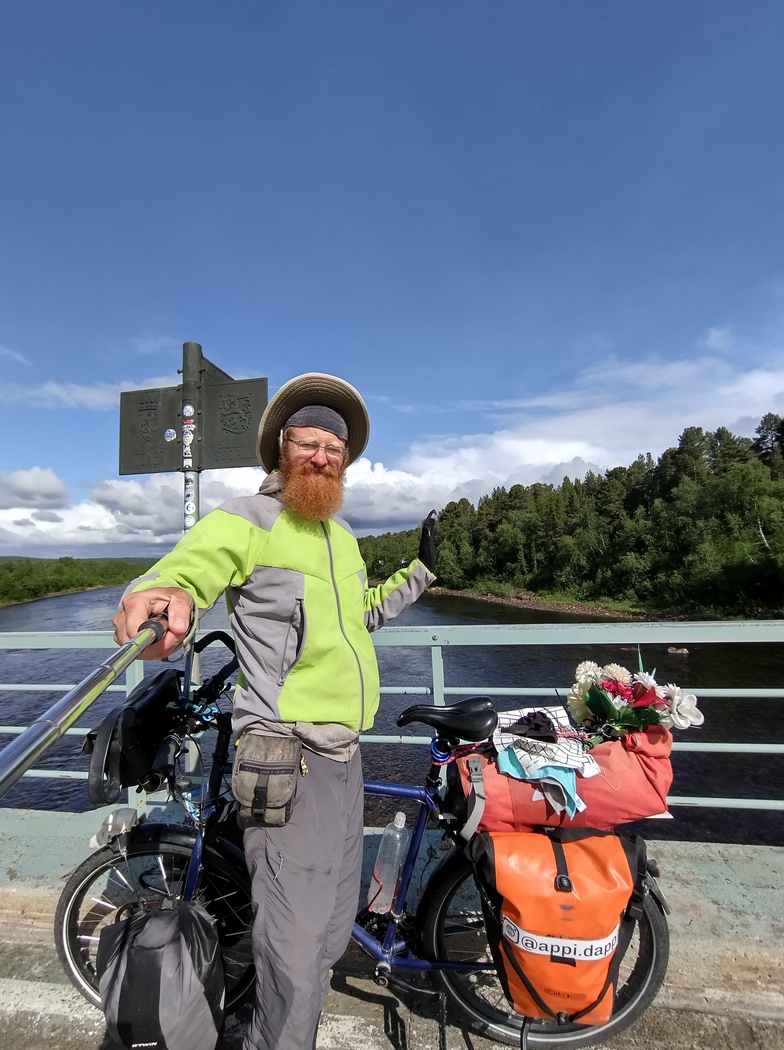 Der kleine Supermarkt hatte allerdings noch nicht geöffnet und so wollte ich schon einmal zur Grenze fahren, um das obligatorische Tschüss und Hallo Fotoshooting abzuhaken. Herrje, musste das denn tatsächlich so steil runter bzw. rauf gehen zum Grenzfluss Inarijoki Siehe an, da es sich zwar um keine Schengengrenze, aber um eine EU-Außengrenze handelte, gab es zwar keine Kontrolle, dafür aber ein Büro, um zu verzollende Ware anzumelden.