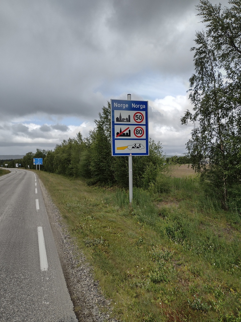 Nun aber ab nach Norwegen und was soll man sagen? Es dauerte nur wenige Kilometer bis die Landschaft sich von der finnischen 1.400 km Monotonie in wahrhaft spektakuläre Bergpanoramen wandelte. Vollkommen überwältigt von diesem Szenario vergaß ich glatt ein entsprechendes Beweisfoto zu schießen, zumal es gerade so schön zügig bergab ging.