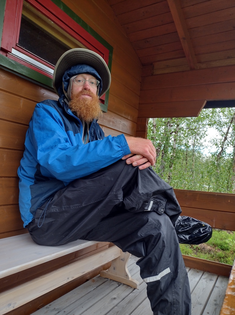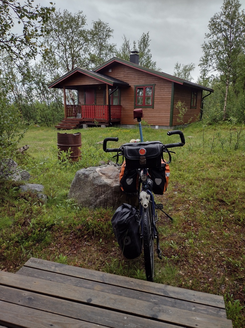 Das Wetter sollte allerdings nicht mitspielen und zum allseits bekannten Gegenwind mischte sich bald ein Dauerregen, den zu ignorieren nicht lange glückte. Hinter dem ersten norwegischen Ort Karasjok fand ich dann zum Glück eine offene Jägerhütte, frisch hingezimmert, gleich neben einem Schießplatz und hermetisch verschließbar. Ein idealer Ort um den Regen auszusitzen, der am Nachmittag durchgezogen sein sollte.