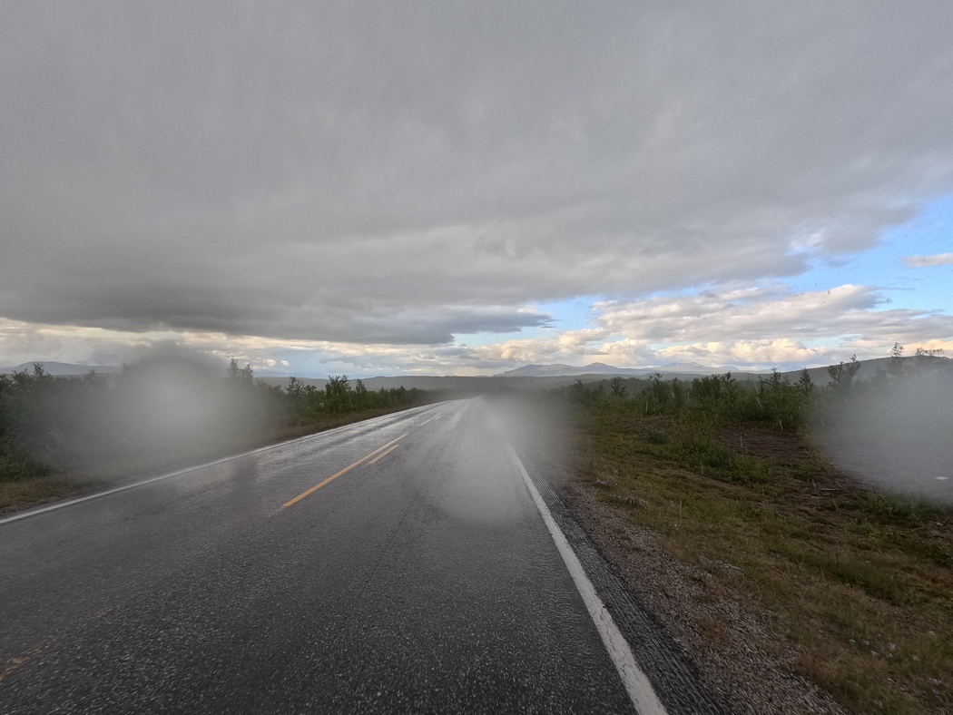 Natürlich dauerte es nach dem erneuten Aufbruch nicht lange bis der nächste Schauer über der Finnmark hereinbrach, aber wenigstens war ich diesmal schlau genug gewesen die Regenkleidung nicht in einem Anflug unangebrachten Optimus abzustreifen.