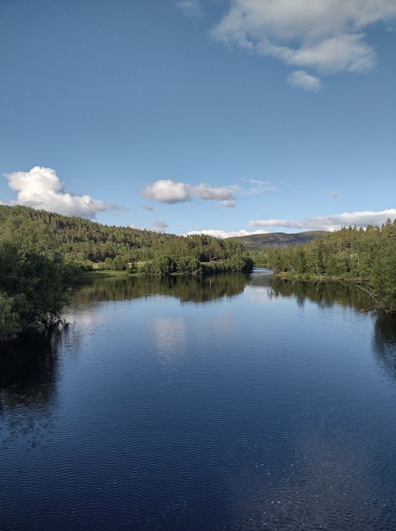 Die Garage war recht aufgeräumt, stank allerdings fürchterlich nach petrochemikalischen Erzeugnissen. Für eine Nacht würde man damit allerdings zurechtkommen, dachte ich, immer noch besser als bei Wind, Kälte und Regen zu zelten. Der unfreiwillige Gastgeber kramte sogar noch ein Feldbett hervor und überließ mich dann meinem Schicksal. Seine letzten Worte waren noch, dass er das Wasser aus dem Fluss bedenkenlos trinken könne, sie selbst tränken es den ganzen Sommer über, wenn es nicht ihr Sommerhaus wäre auch das ganze Jahr. Das schlug natürlich in die schon bekannte Kerbe, allerdings überraschte es dennoch ein wenig, da es sich nicht um einen kleinen Gebirgsbach handelte, der gerade aus dem Fels sprudelte, sondern um einen veritablen Fluss, der kurz vor der Mündung ins Nordmeer gerade eine Straßenbrücke unterquert hatte.