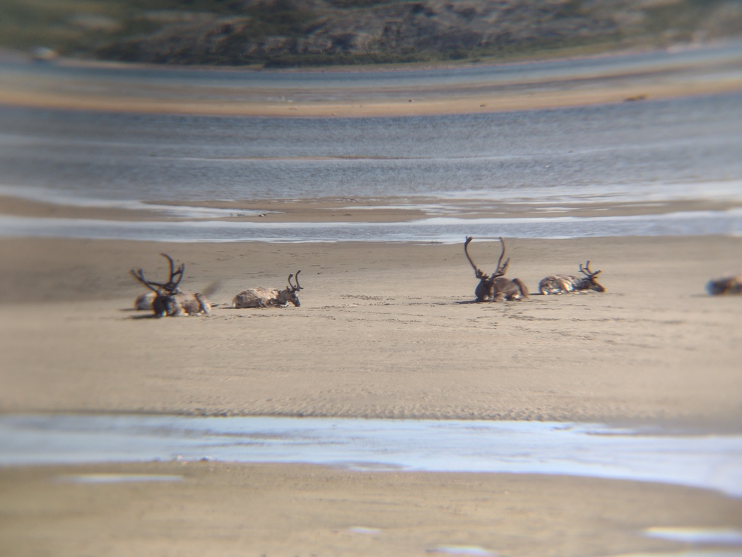 Dort lagen bei Ebbe Rentiere im Watt, die sich dabei von unzähligen Wohnmobilbewohnern beobachten lassen mussten.