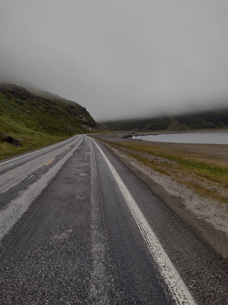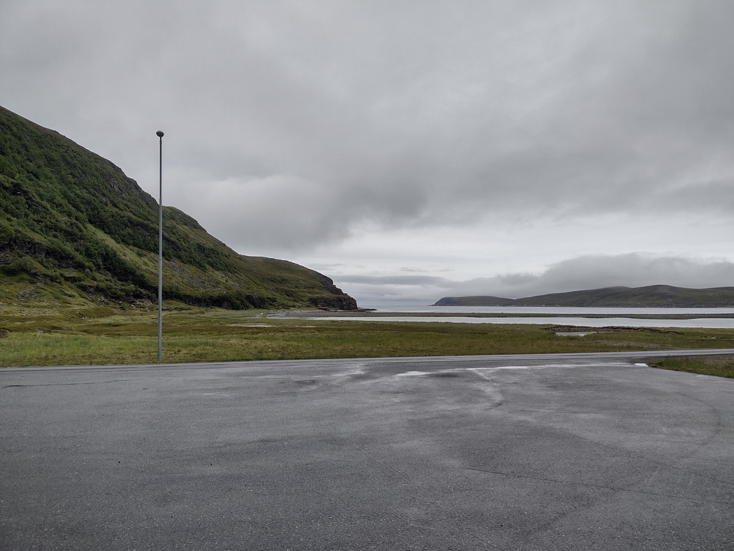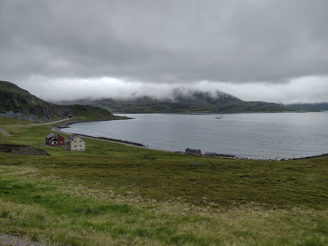 Um 8 Uhr morgens war der Regen vorbei und ich verließ mein Nachtlager, da das Haus noch dunkel und still darlag, ohne eine Verabschiedung. Auch wenn es nicht mehr regnete, war die Luftfeuchtigkeit so hoch, dass es fast keinen Unterschied machte, zumal der Wind noch nicht nachgelassen hatte. Das Naturerlebnis war dennoch von außergewöhnlicher Faszination und das Wetter passte natürlich auch viel besser ins Gesamtbild, war ich doch im Begriff heute den nördlichsten per Straße erreichbaren Punkt Europas zu erreichen.