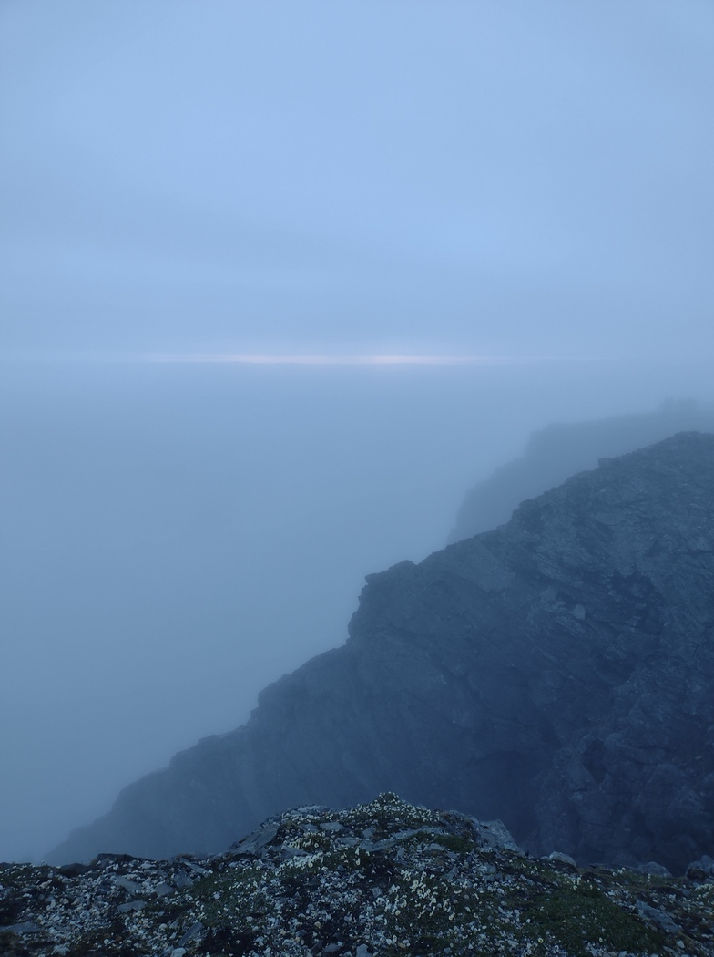 Mit einer vagen Hoffnung, die Sonne könne ggf. noch einmal rauskommen, harrten wir so bis Mitternacht aus, sollten aber kein Glück haben. Einmal zeichnete sich am Horizont ein fahler Silberstreifen ab, das war dann aber auch schon das höchste der Gefühle.