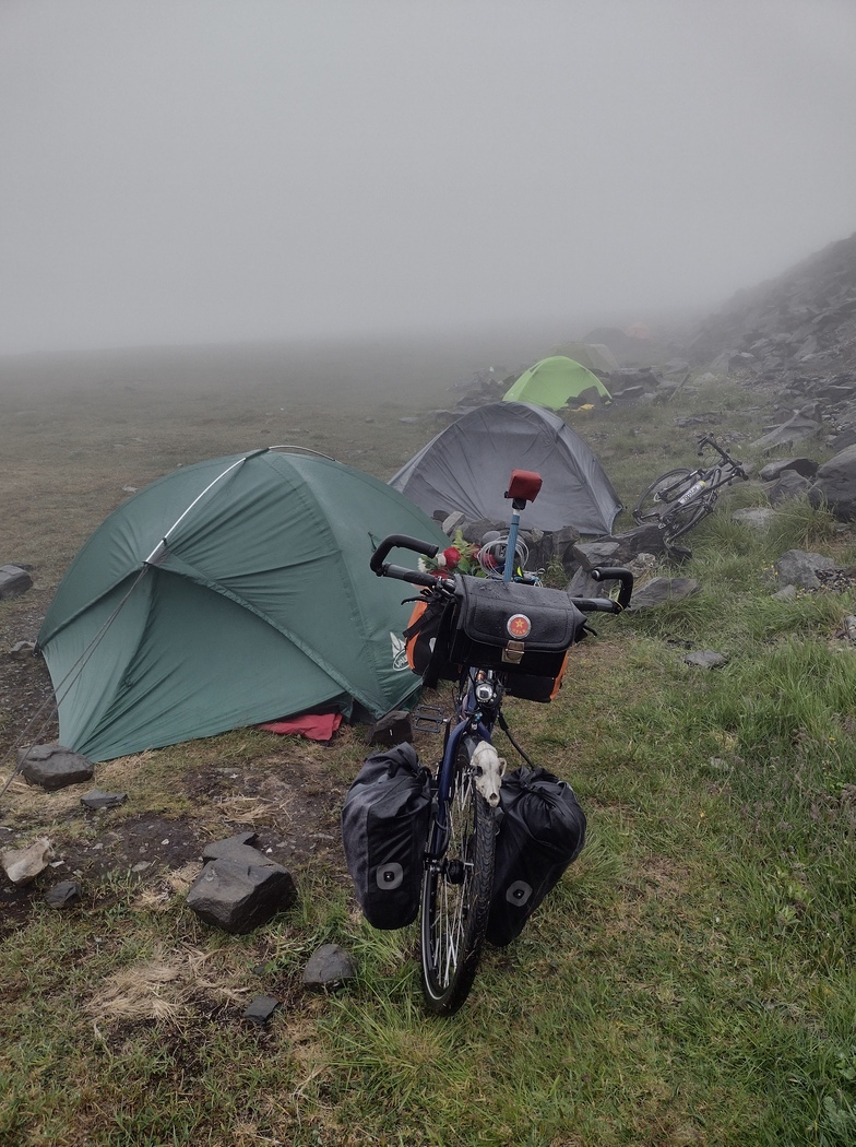 Das Zelt von meiner österreichischen Bekanntschaft unbekannten Namens stand noch, als ich nun anfing mein triefend nasses Edwin einzupacken. Auch als ich damit fertig war, hatte sich noch nichts geregt. Da wir es versäumt hatten uns einander vorzustellen (wie es beim Reisen so häufig passiert, da man nie weiß, ob es zu einer flüchtigen oder kurzen Bekanntschaft wird), fiel mir auch keine geeignete Ansprache an („… bist du schon wach?“), sodass ich schließlich aufbrach und schleunigst das Weite suchte, denn es war wirklich nicht angenehm hier oben. Meine Rückfahrt nach Deutschland hatte begonnen.