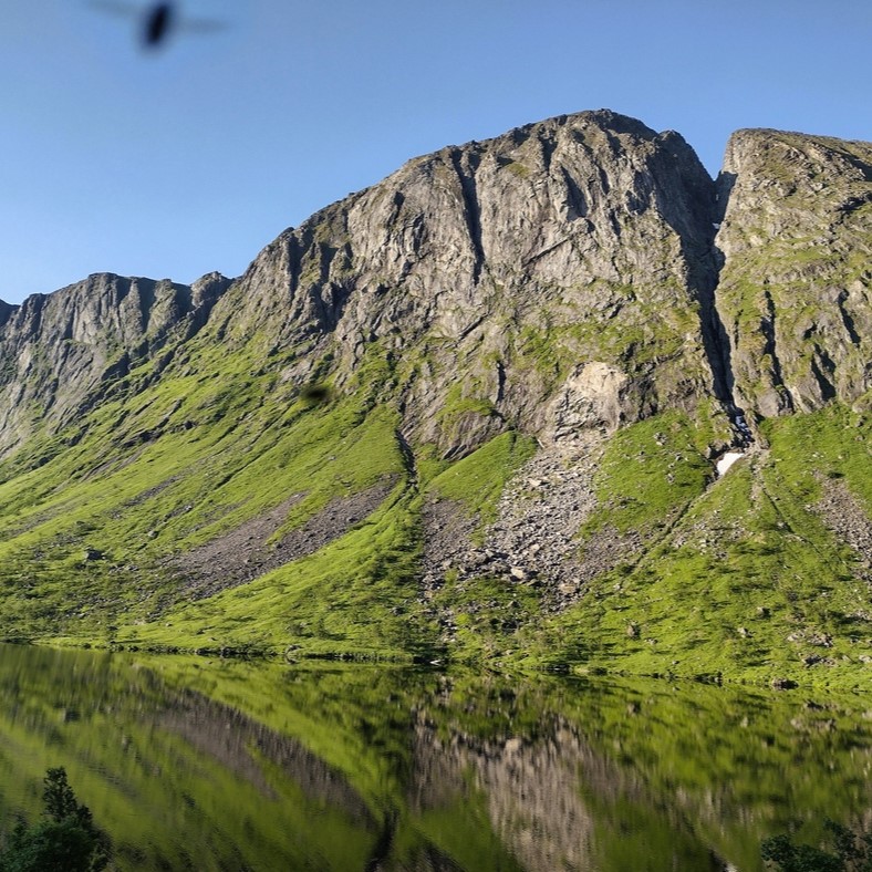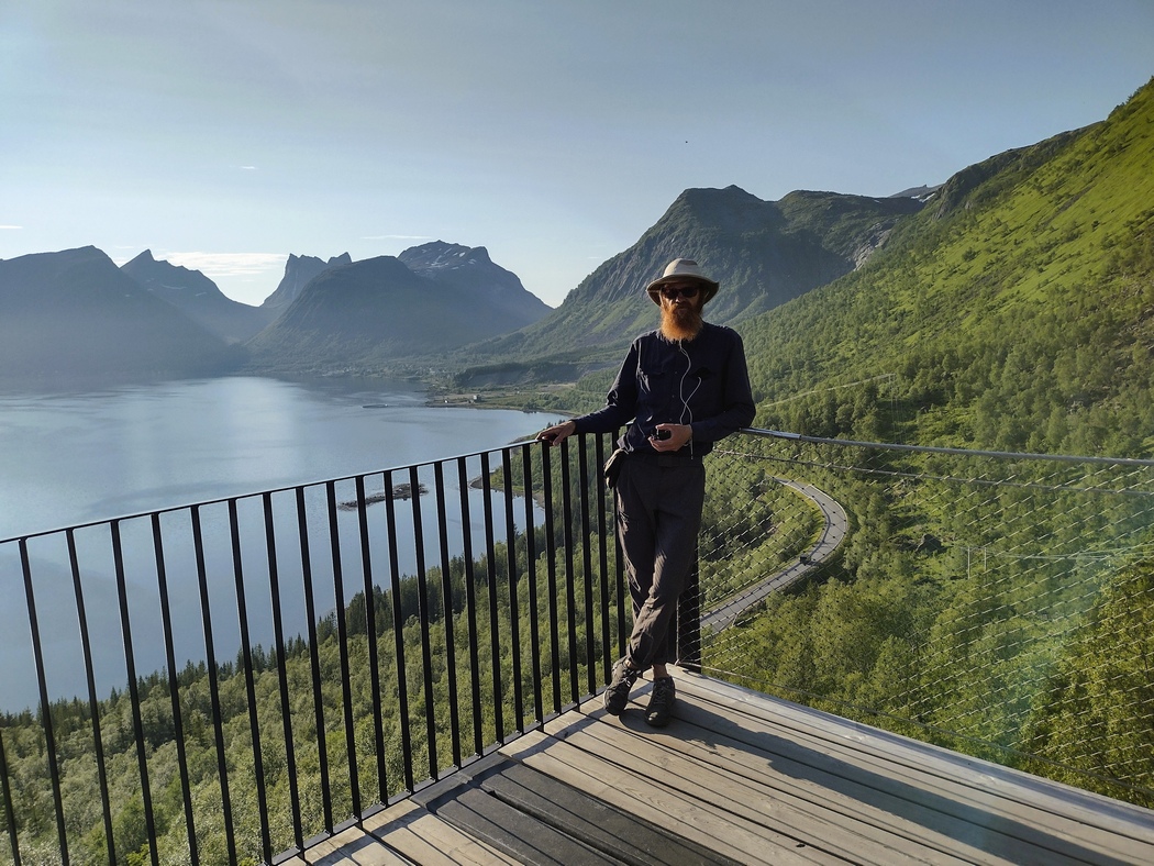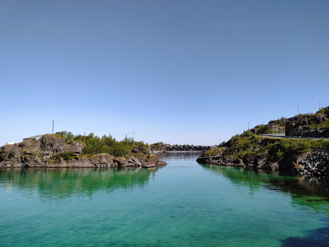 Auf dem Weg nach Brensholmen, umrundete ich am nächsten Morgen einen malerischen Neben-Fjord, um das sich das Fischerdorf Sjötun schlängelte. Bei traumhaftem Wetter beobachtete ich einen Fischotter, der von einem Steg in das vor lauter Klarheit fast unsichtbare Wasser sprang, während sich allerlei Seevögel lautstark unterhielten. Ich war früh genug unterwegs, dass außer mir noch kaum jemand auf der Straße war und ich konnte nichts anderes denken als „hail to Slatibartfast!“