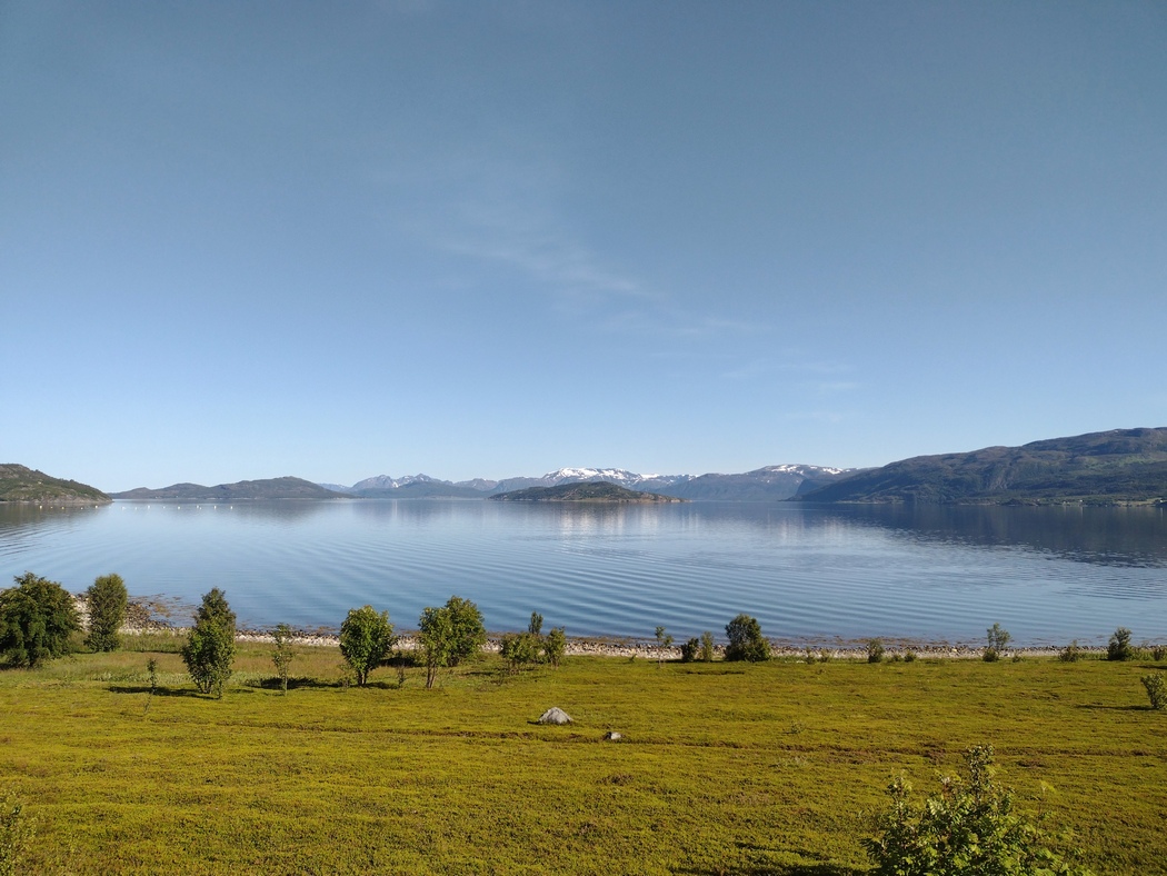 Ein traumhaftes Nachtlager fand ich weit nach 21 Uhr an einem Fjord, wo sich vor mir zwar eine bedeutende Anzahl anderer Reisender mit Motorrad, Wohnmobil und Fahrrad niedergelassen hatten, aber das Areal war weitläufig und alles lag bereits in friedlicher Stille dar.