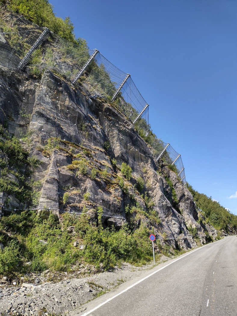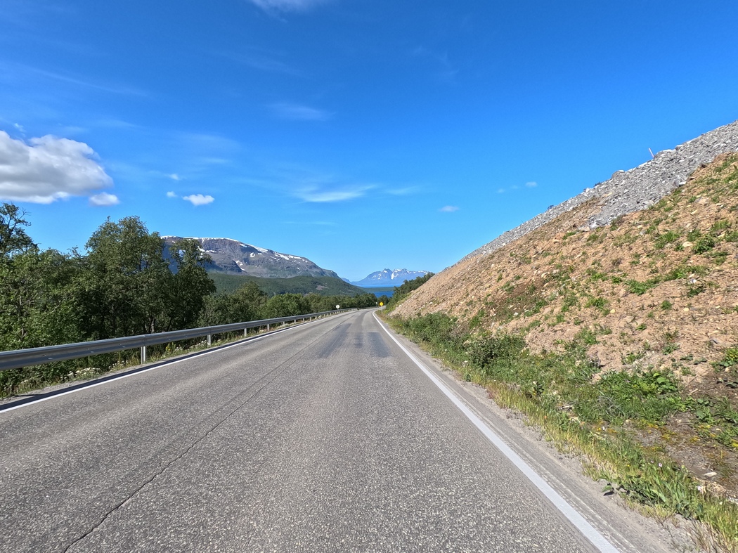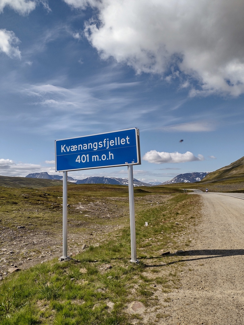 Höhenmeter kamen auf mich jedenfalls an diesem Tag wieder einige hinzu, denn die E6 wich ein Stück ins Landesinnere zurück, um sich über den 401 Meter hohen Kvänangsfjellet zu wuchten. Auf etwa der Hälfte des Anstiegs befand sich die Baustelle für einen neuen Tunnel, was mich wenig verwunderte, da Tunnelbau in Norwegen eine beliebte Freizeitbeschäftigung zu sein scheint.