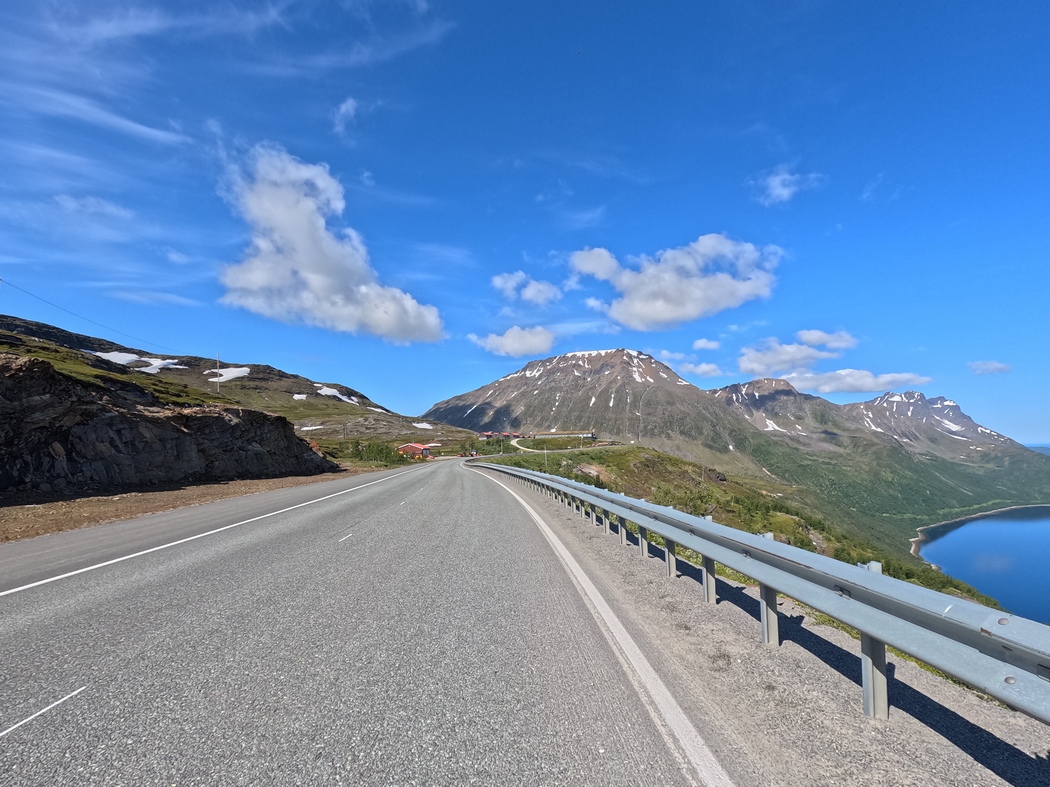 Zunächst war mein Plan gewesen vom Nordkapp aus den direkten Weg in Richtung Helsingborg, Schweden zu nehmen, was allerdings bedeutet hätte, die Küste umgehend zu verlassen und sogar noch einmal ein Stück durch den nordwestlichen Finger Finnlands zu fahren. Ich konnte mich aber von der Pracht dieser Landschaft nur unheimlich schwer lösen und vertröstete Julia nun Tag für Tag damit, wenigstens noch einen Tag länger dem Ufer des Nordmeeres folgen zu wollen. Täglich plante ich die Route um bzw. bat Julia im Backoffice verschiedene Varianten auch im Hinblick auf die zu überwindenden Höhenmeter zu vergleichen.