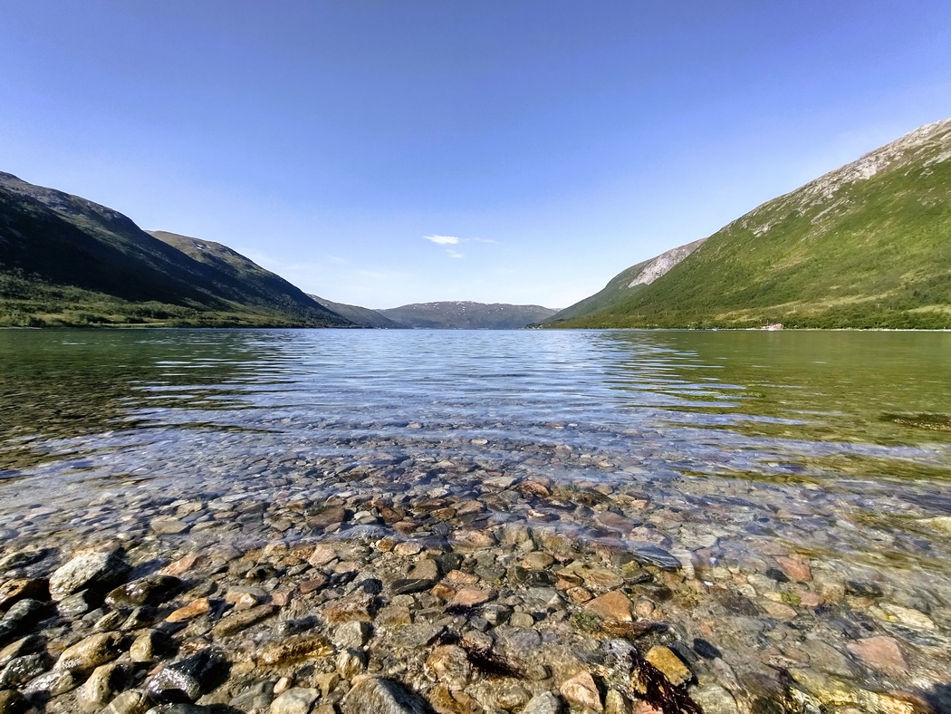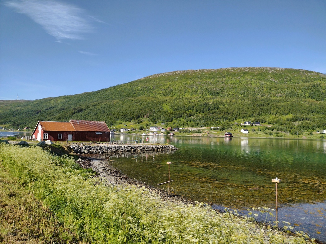 Hier ein Fjord, da ein Tunnel durch den Berg, dort eine Fischerhütte und überall kristallklares Wasser. Nach meinem Dafürhalten gebührt der Küste Nordnorwegens ohne Frage ein Platz unter den Top 10 der schönsten Landschaften auf dem Planeten. Einzig der Schlafplatz an jenem Tag, ich hatte nach gut 100 km wirklich genug und merkte, dass ich dringend einmal einen Pausetag einlegen müsste, war verhältnismäßig uncharmant auf einer Schotterfläche hinter einer verlassenen Gewerbeimmobilie. Er erfüllte seinen Zweck dennoch.
