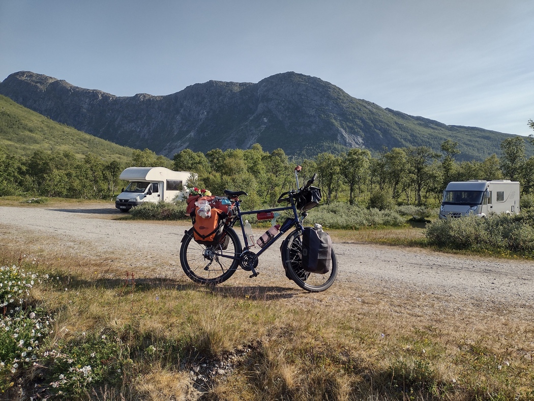 Gegen halb vier erreichte ich Tromsø, aber da ich bei den ortsansässigen warmshowers-hosts ohne Erfolg geblieben war und mir die Stadt auch nicht besonders gefiel, fuhr ich nach einer Pause in der Mall, bei der ich meine erst in Tallin erworbenen Kopfhörer verlor, weiter in Richtung Westen.