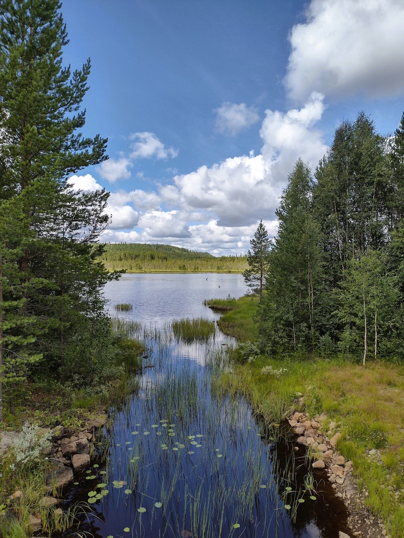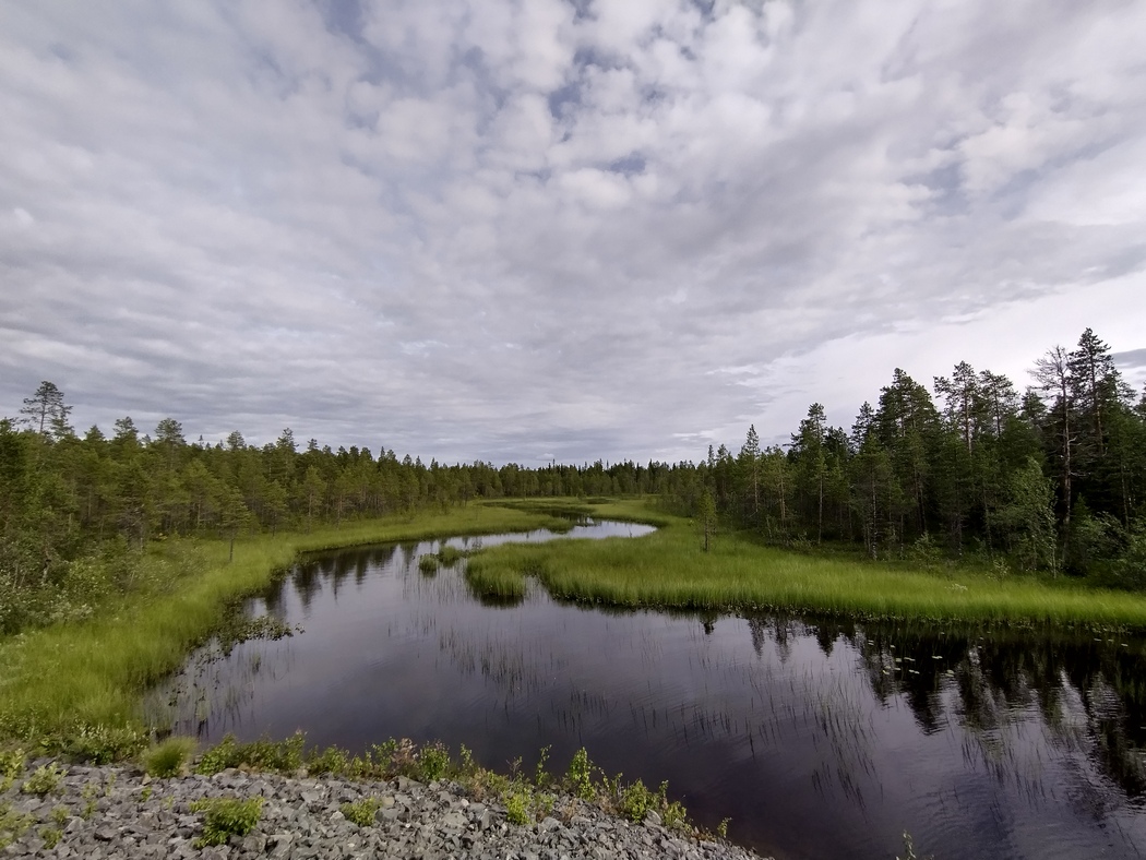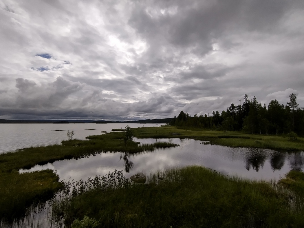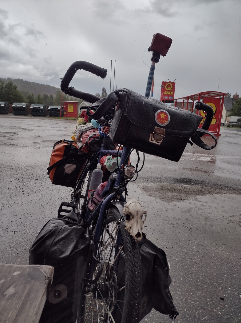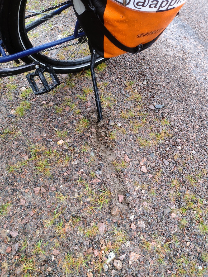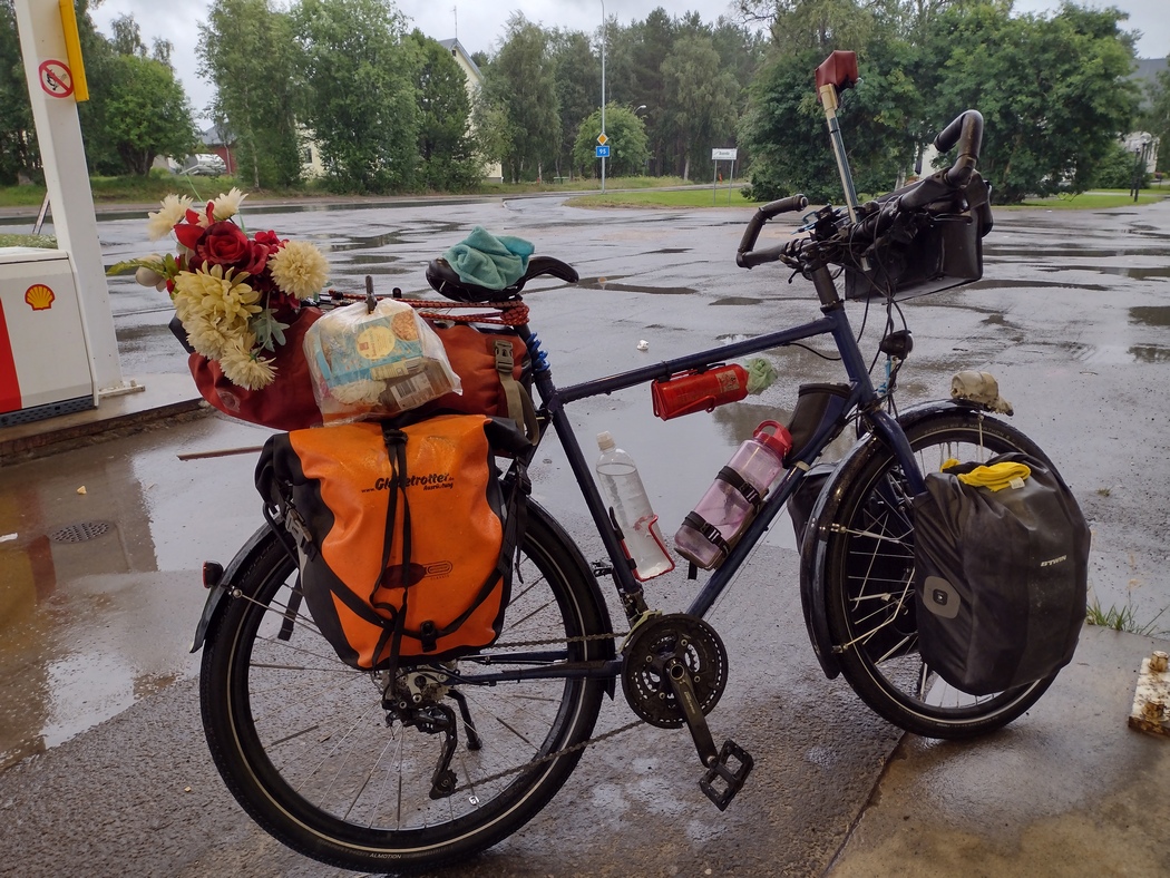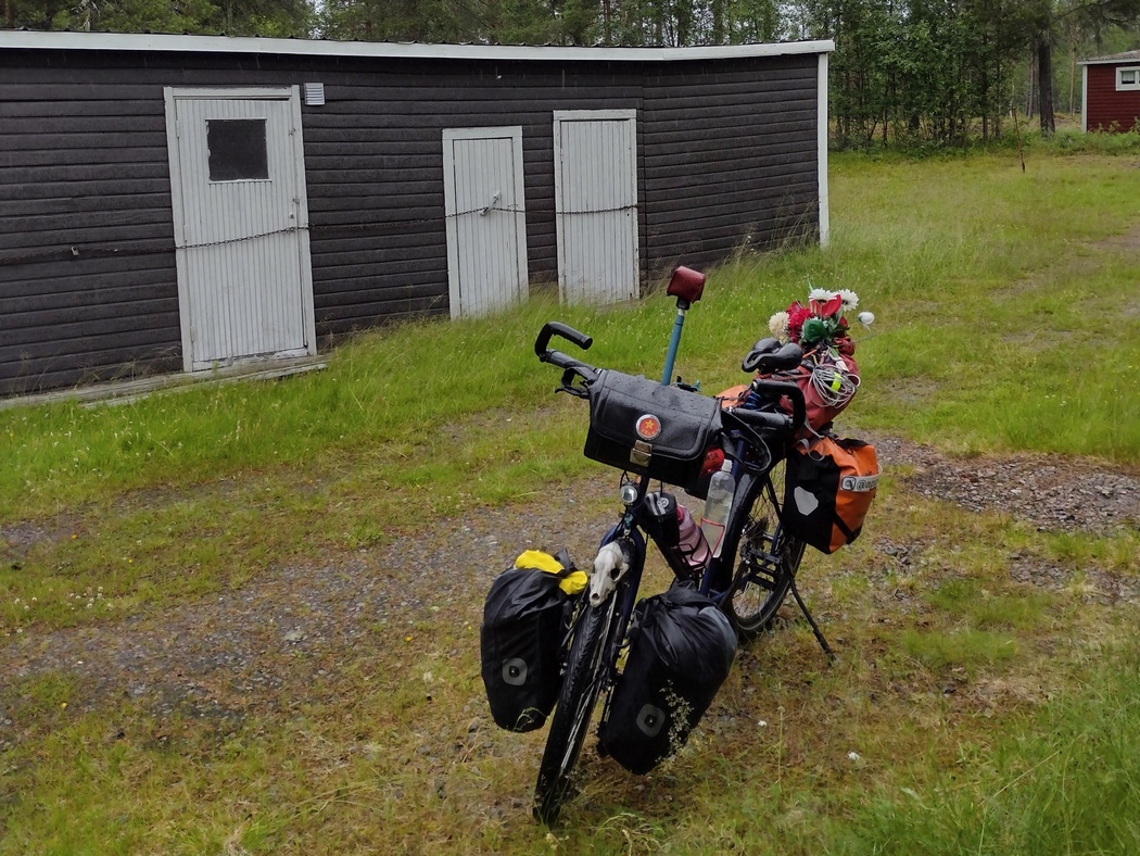 …und war entsprechend schon früh wach. Zum Glück hatte der Wind entgegen der Vorhersage allerdings doch deutlich nachgelassen und auch der Regen hielt inne als ich um 5 Uhr aufs Fahrrad stieg. Die Fahrt bis Adak verlief reiz- und ereignislos. Lediglich die dünne nordschwedische Besiedlungsstruktur machte mir nach wie vor zu schaffen, da ich für eine Flasche Leitungswasser einen großen Umweg in Kauf nehmen musste.