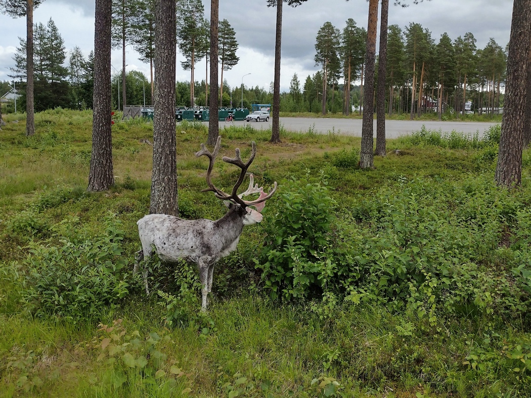 Meine Minderleistung des Vortags kompensierte ich am Folgetag mit einer Tagesetappe von 152 km über Lycksele und Åsele bis zu einem schönen aber mückenreichen und feuchten Campspot im Unterholz am Ufer des Ångermanälven. Kurz vor Feierabend war ich bei meiner Suche nach Wasser auf eine Gruppe rumänischer Waldarbeiter gestoßen, die mir neben Wasser auch Bier und Gras anboten. Beim Bier sagte ich nicht nein.