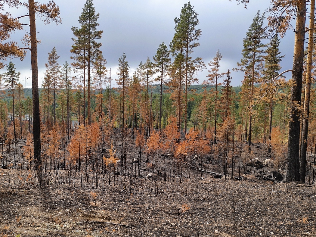 Aber mit dem Pause machen war das gar nicht so leicht. Nicht nur hatte ich den Wunsch und das Pflichtgefühl so schnell wie möglich wieder bei Julia zu sein, auch trieb mich das schlechte Wetter so wie die viel zu hohen Übernachtungspreise für ein alternatives unterkommen in einem Hostel oder Hotel immer weiter. Auch heute regnete es wieder und in den Unterstellpausen schleppte ich mich relativ unmotiviert die Hügel herauf durch eine zwar liebliche aber doch auch sehr monotone Landschaft. Die größte landschaftliche Abwechselung stellte am frühen Nachmittag ein kleines von einem nicht lange zurückliegenden Waldbrand betroffenes Areal dar.