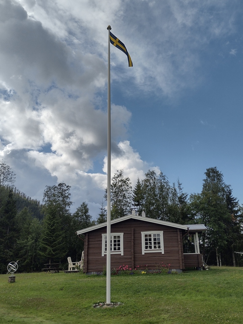 Gegen 16:45 Uhr verließ ich dann die 90 kurz vor dem Mångmanskogens Naturreservat und fuhr zwischen Hauptstraße und Ångermanälven über die Dörfer. Zunächst folgte ich dem Schild zu einem Schwimmbad in der Hoffnung dort in einer Hütte die Nacht verbringen zu können, wie einst am Tag des Aufbruchs aus Neu-Planig, doch die Spur verlor sich bald. Dann fuhr ich einen Shelter an, den ich in der entsprechenden App gefunden hatte, doch dort angekommen musste ich feststellen, dass dieser nur Fuß zu erreichen war und zudem zu klein, um in ihm das Innenzelt aufzubauen. Ich fasste daher den Plan in einer Scheune, einer Garage oder einer Gartenhütte zu übernachten, aber meine Anfragen verliefen im Sande. Keiner hatte Lust mich auf seinem Grundstück unterkommen zu lassen und kleidete diese Kernaussage in das Gewand der Aussage keine Idee zu haben, wo das gehen könnte.