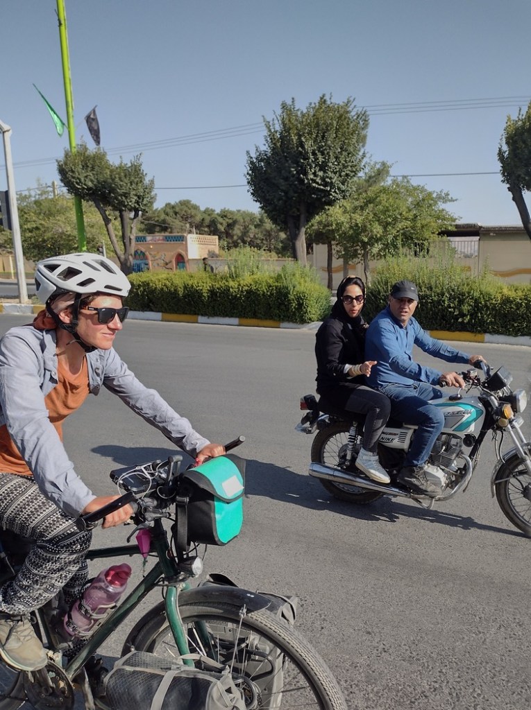 Fahrradfahren im Iran macht größtenteils keinen Spaß. Die Landschaft ist relativ eintönig und es herrscht fast überall sehr viel Verkehr, auch außerhalb der großen Städte. Die Straßen verfügen meistens über keinen Seitenstreifen, weshalb die LKWs und Autos nur sehr knapp überholen. Die meisten Fahrzeuge sind sehr alt und deshalb ungewöhnlich laut und extrem schmutzig. An Bergen wird einem dann schon mal eine ordentliche Portion Ruß ins Gesicht gepustet und Luft anhalten ist in dem Moment nicht möglich. Wir sind deshalb zeitweise mit Masken gefahren.