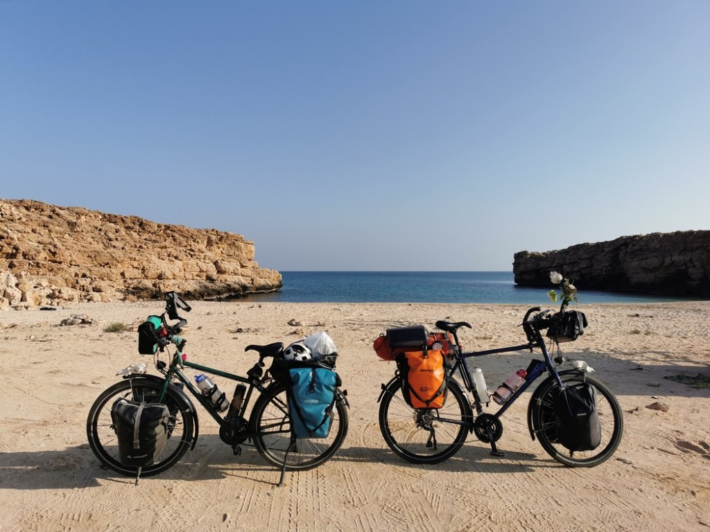 Der Oman ist ein Land, das man sehr gut mit dem Fahrrad bereisen kann. Die Landschaft ist sehr interessant und man kann viele wunderschöne Wadis entdecken. Die Straßen sind gut ausgebaut und größtenteils wenig befahren, nur um die großen Städte (die man an einer Hand abzählen kann) wird es etwas anstrengender. Die Wasserversorgung ist gar kein Problem, in jedem Ort gibt es öffentliche Wasserspender mit gekühltem und gefiltertem Wasser, manche funktionieren zwar nicht, aber es gibt trotzdem genug. Auch Supermärkte sowie Coffee Shops gibt es in jedem Ort, auch in den kleineren.